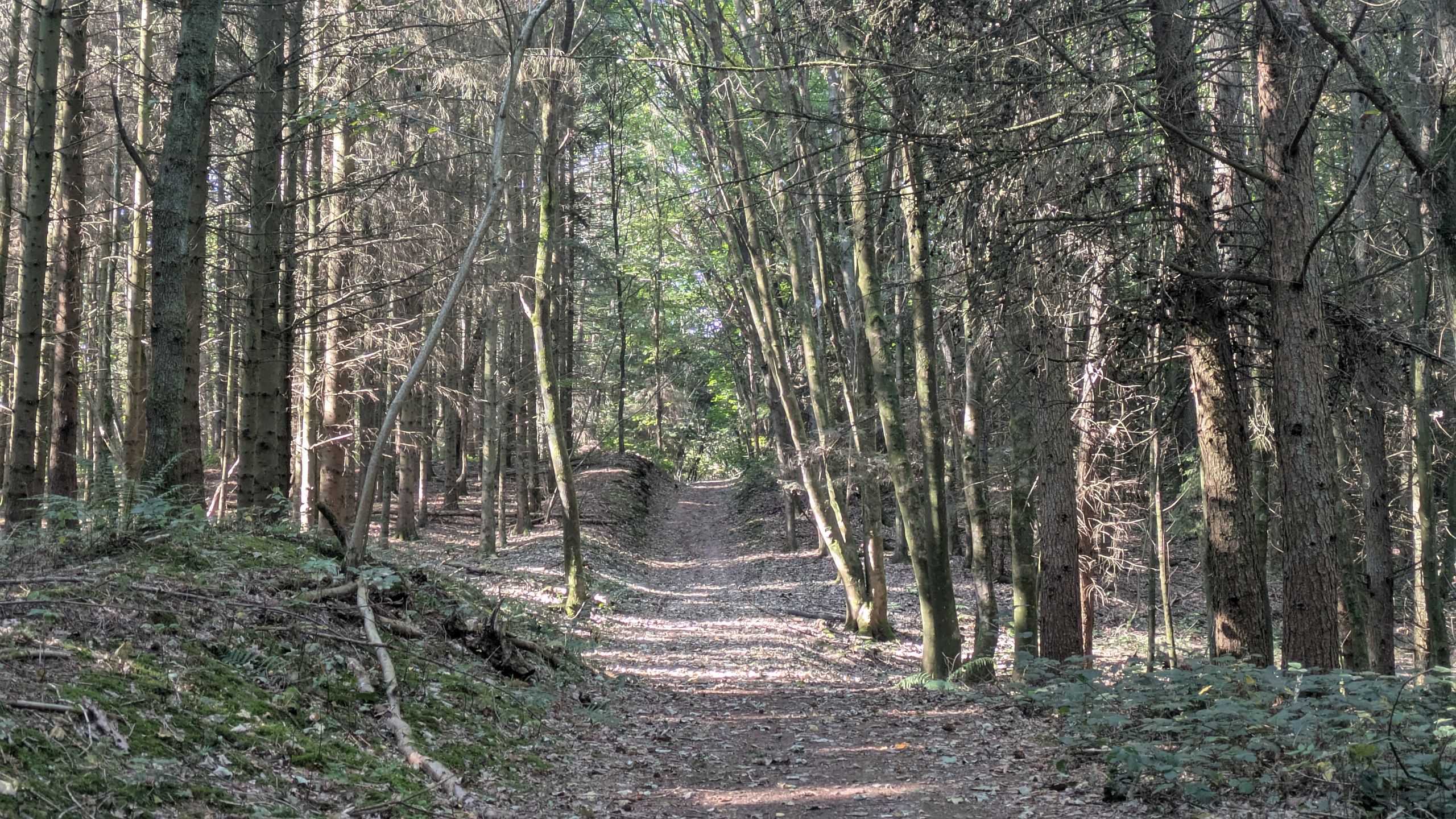 Im Anschluss verläuft der Rundweg ausgedehnt durch den artenreichen Nehmtener Forst, der ebenfalls vom Gut bewirtschaftet wird. Die Landschaft wechselt zwischen lichten Waldpassagen, alten Baumriesen und strukturierten Knicks, in denen zahlreiche Tier- und Pflanzenarten leben. Dieser Abschnitt zeigt eindrucksvoll, wie naturnahe Bewirtschaftung und biologische Vielfalt zusammenwirken.