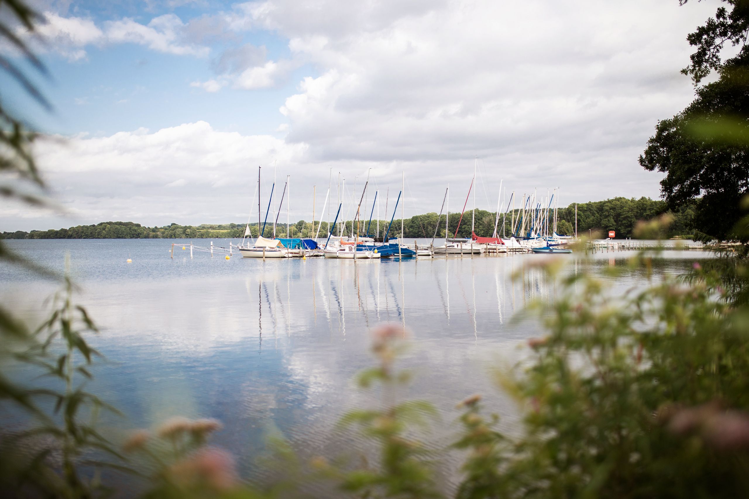 Schließlich erreicht man das Dorf Dersau, das mit gepflegten Gärten, alten Höfen und ruhigen Straßen den Charakter der Holsteinischen Schweiz widerspiegelt. Am kleinen Dersauer Segelhafen schaukeln Boote im Wasser, und der Blick öffnet sich weit über den Großen Plöner See – ein besonders stimmungsvoller Moment der Tour. In der Saison lädt das „Café im Grünen“ zu einer gemütlichen Pause ein.